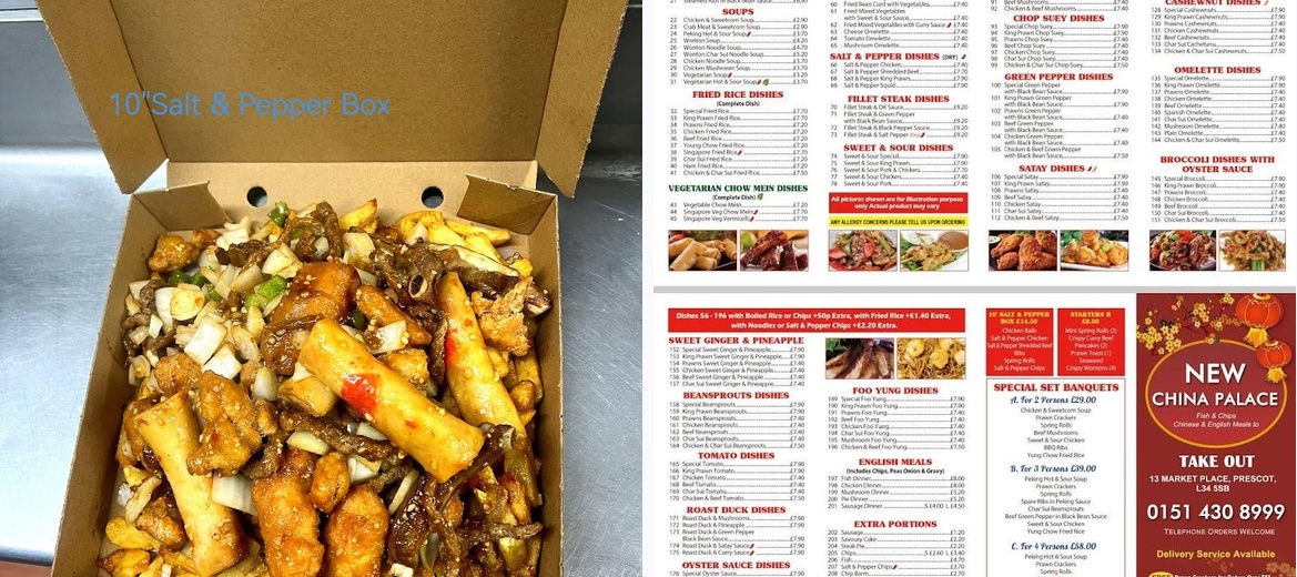 Welcome to New China Palace, your go-to destination for authentic Chinese takeaway located in Prescot, UK. With a diverse menu featuring delicious dishes like chicken fried rice, salt and pepper ribs, and a variety of meat options, we cater to all your cravings. Enjoy casual dining in a relaxed atmosphere—ideal for families or a quick bite. We offer delivery, takeaway, and dine-in services, making it convenient for every occasion. Our restaurant is wheelchair-accessible, and we accept reservations for a seamless dining experience. Experience great value and flavors at New China Palace, where every dish is prepared to perfection!Patrons rave about the food quality, noting that the dishes are always hot and flavorful. The generous portion sizes tantalize taste buds while satisfying hunger. Salt and pepper chicken, in particular, emerges as a crowd favorite—many consider it the best they've ever tasted. Customers appreciate the friendly service and respect shown by the staff, making visits even more enjoyable. The family's dedication shines through, and many locals feel a sense of familiarity each time they stroll through the doors. Late-night offerings keep this spot popular among those in need of a good meal after hours.