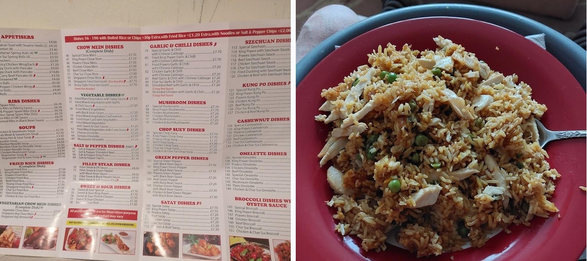 We've just had a delicious takeaway from New China Palace. We tried a variety of meat dishes including ribs, chicken & beef. We chose rice, noodles & chips as side dishes. I was a bit hesitant due to the reviews but we're so glad we went as the food was amazing! Good portions and reasonably priced too.